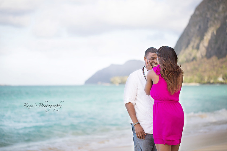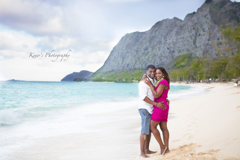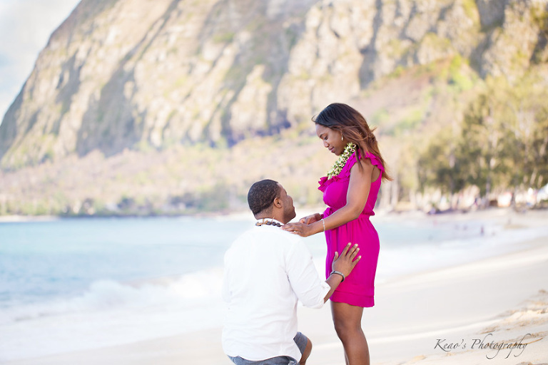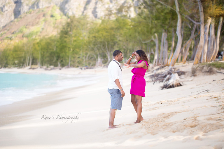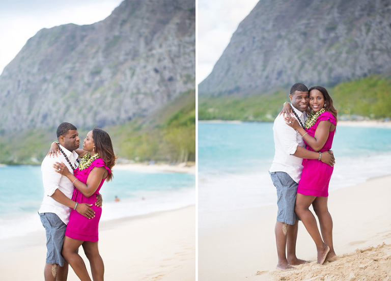 From his very first email, Davon struck me as a man who set out to do things with a purpose. This man had a very clear plan. He and Robin had been dating for years and he wanted to surprise her with a proposal in Hawaii. He was very clear, he didn’t want to just propose, he wanted to propose in a perfect setting on a gorgeous beach. He wanted the moment and location to be perfect for Robin. No problem, I love fulfilling dreams! We chose a gorgeous white sand beach with purple-hued mountains rising in the background, off the beaten track so we escaped the crowds at the more touristy beaches.