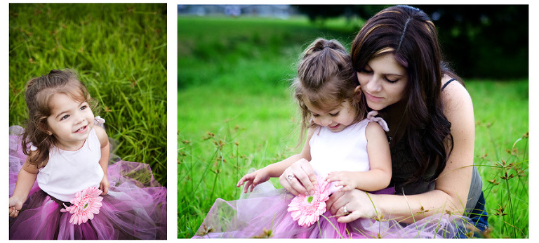 HB didn't like the grass tickling her legs but mommy made everything fun with a flower tossing game