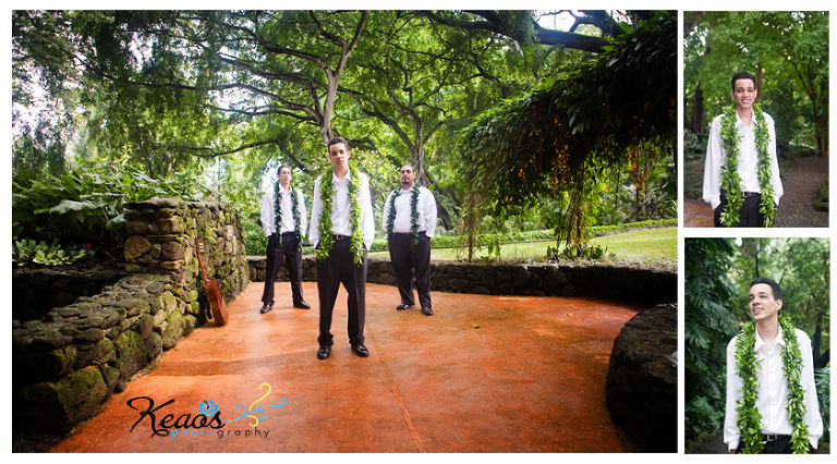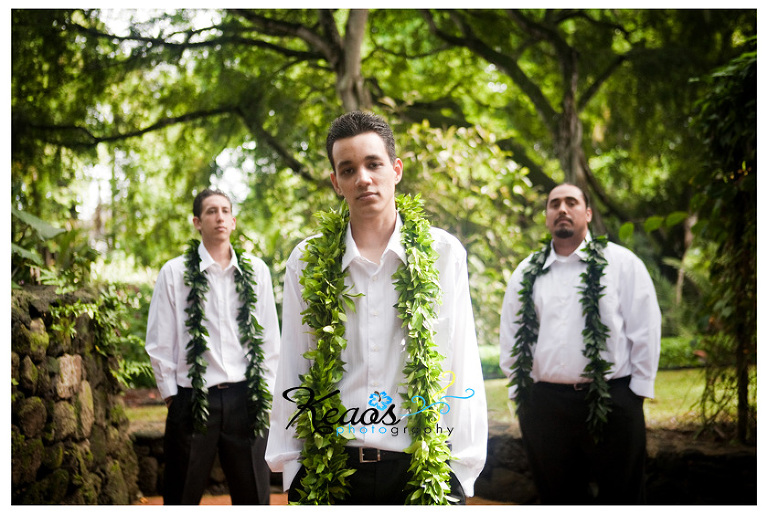 I stopped by the girls hotel room to get some getting ready shots. They were staying at Ko Olina. It was probably the most calm I’ve seen any bridal party on the morning of. The sisters were watching Dirty Jobs while they took their turn getting their hair and make-up done. And then it was just a quick drive up to Wahiawa Botanical Gardens. It was cloudy and drizzling everywhere on the island EXCEPT for Wahiawa. Nothing but beautiful weather shone over the gardens.